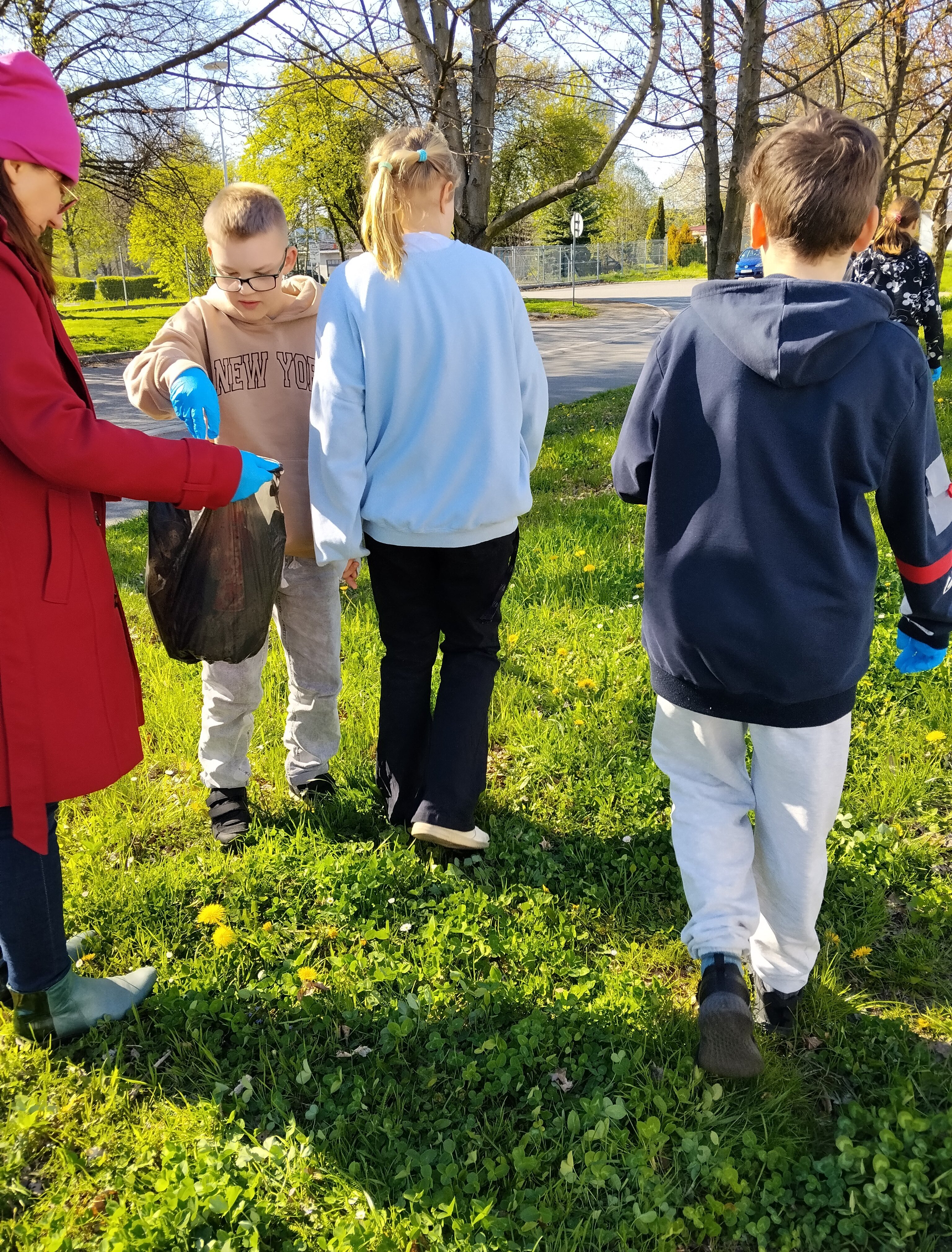 Dnia 22 kwietnie dzieci ze świetlicy Różowe Okulary uczestniczyły w akcji "Sprzątanie świata". Razem z wychowawczyniami wybrały się w teren, by w najbliższej okolicy zebrać leżące śmieci. Śmieci było co niemiara. Znajdowały się puste butelki, stare ubrania, kapsle i inne niefajne rzeczy, które swoje miejsce powinny mieć w śmietniku, a nie wśród traw i kwiatów. Dbanie o najbliższą okolicę to nasza wspólna sprawa, bo czystość środowiska to nasze wspólne dobro.