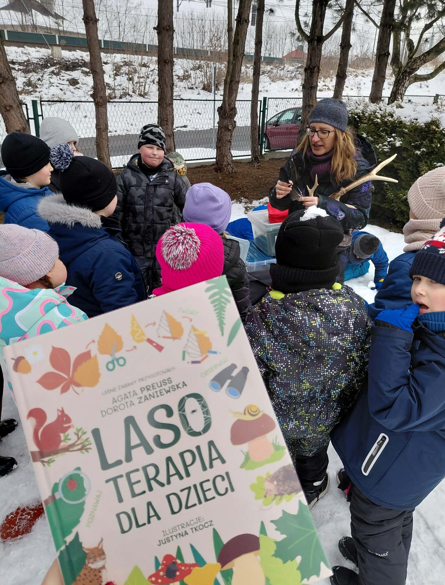 Druga część spotkania odbyła się w terenie i miała charakter warsztatów przyrodniczych. Uczestnicy obserwowali elementy leśnego ekosystemu, badali przez lupę korę drzew, poszukiwali śladów zwierząt oraz poznawali ciekawostki związane z funkcjonowaniem lasu. Inspiracją do działań były publikacje "Lasoterapia dla dzieci" oraz "Chodź na dwór!", promujące uważny i świadomy kontakt z naturą.