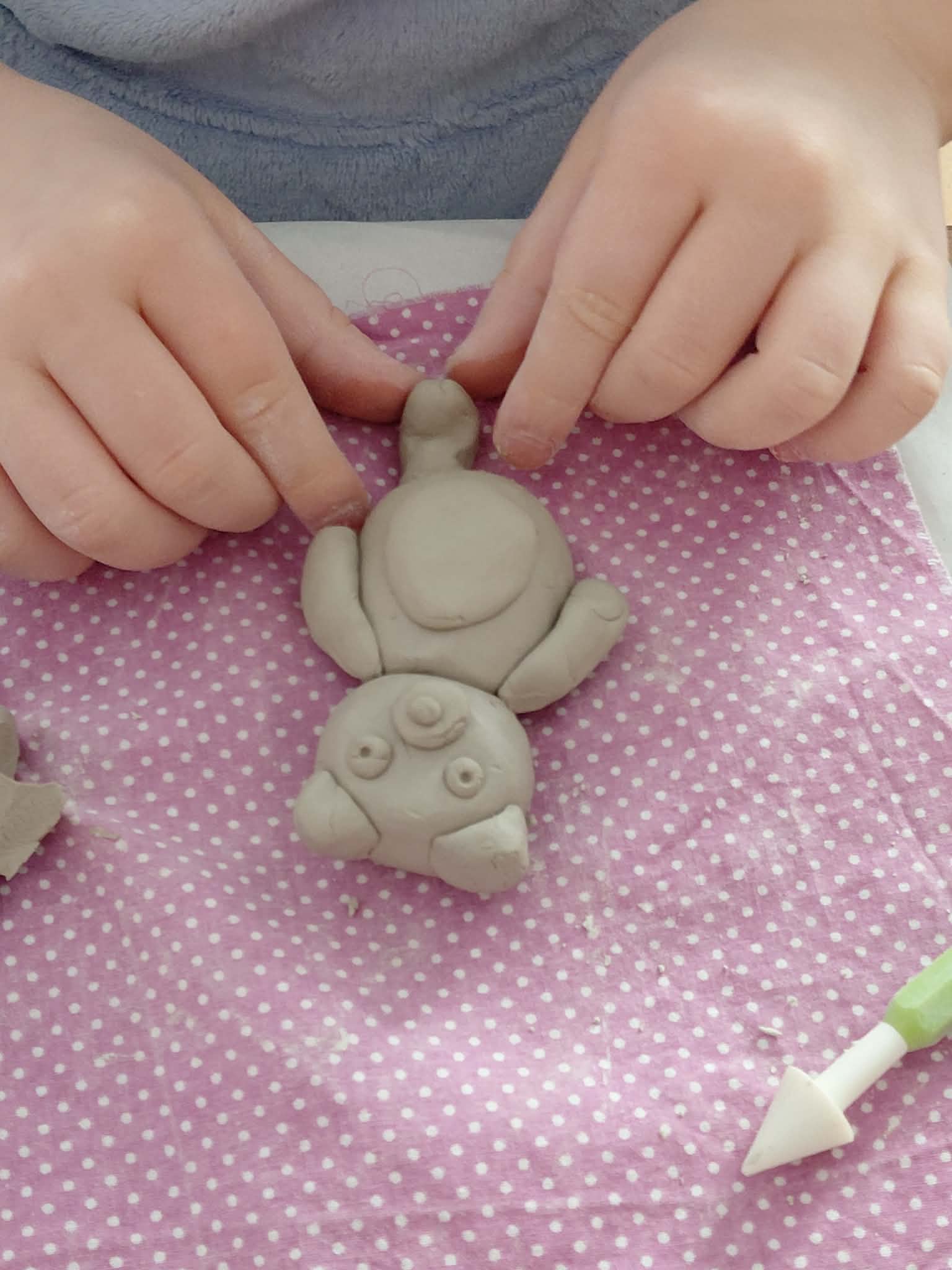 Jednym z pierwszych spotkań były warsztaty „Ziemia Pełna Dobrej Energii”. Zajęcia rozpoczęły się od sensoceramiki – pracy z gliną, która angażuje zmysły, rozwija motorykę małą oraz pobudza kreatywność. Uczestnicy eksperymentowali z fakturą i formą, doświadczając materiału poprzez dotyk i swobodne tworzenie.